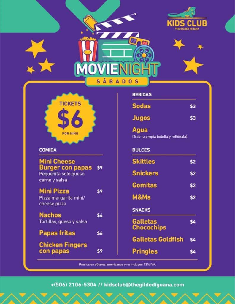 Inquire at the Front Desk, via Whatsapp +506 2016 5304 or email us kidsclub@thegildediguana.com
